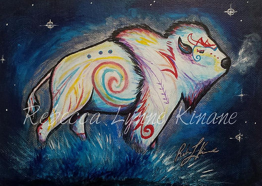 Spirit bison dance across the Milky Way Galaxy as their descendant looks up at the stars, connecting past and present under the night sky we all share.
